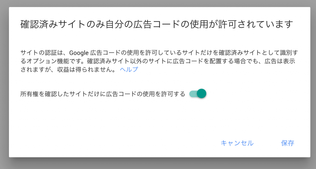 所有権を確認したサイトだけに広告コードの使用を許可するにチェックしましょう。