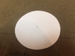 穴の位置を決めるために型紙を作ります。6インチは直径15.24cmなのでサークルカッターの目盛を合わせて型紙を切っていきます。