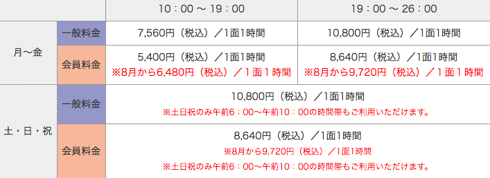 やはり金額は少し高めですね。金額は高いですが、コートの状態なども綺麗に保たれていて怪我の心配もほとんどありません。