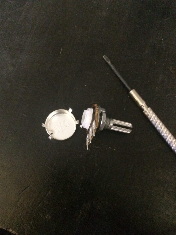 ポットを分解する前に基盤からポットを取り外しておきます。ポットを取り外す作業はここでは割愛させていただきます。