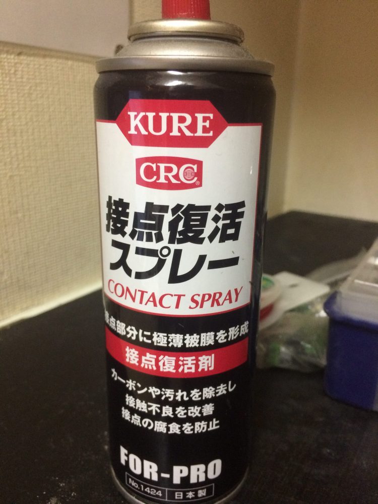 このいかにも接点復活しそうなスプレーその名も「接点復活スプレー」を使用します。