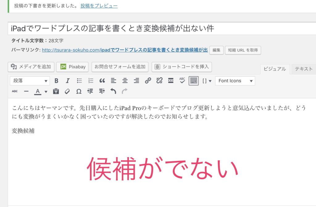 変換候補がでない時それはビジュアルモードで記事を書いていたからでした。