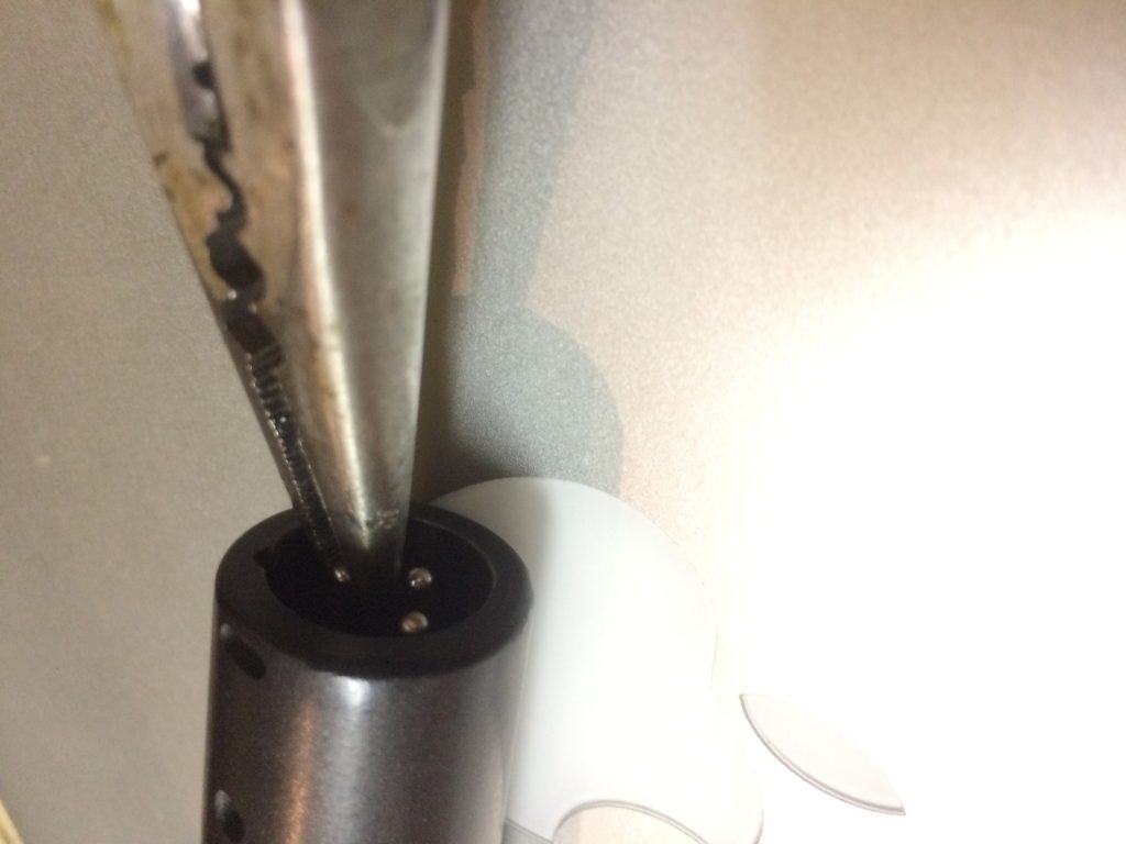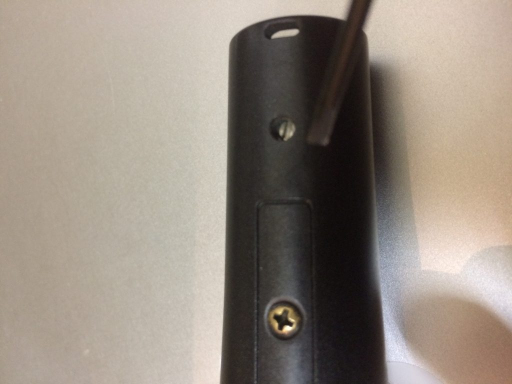小さいマイナスドライバーで回せるポイントがあります。ここを反時計回しで緩めていきます。するとXLRコネクタのオスが引っこ抜けるようになります。引っこ抜く時はラジオペンチを使用していますが、コネクタを痛める可能性があるため布かなんかを挟んだ方が良さそうです。