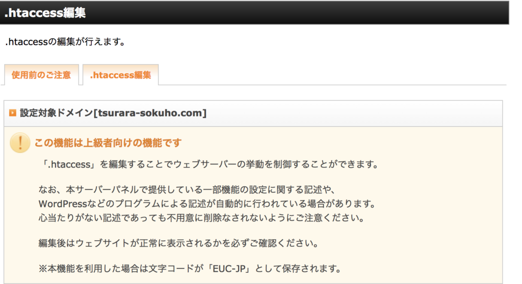 サーバーパネルからホームページという項目の中にhtaccessという項目があります。