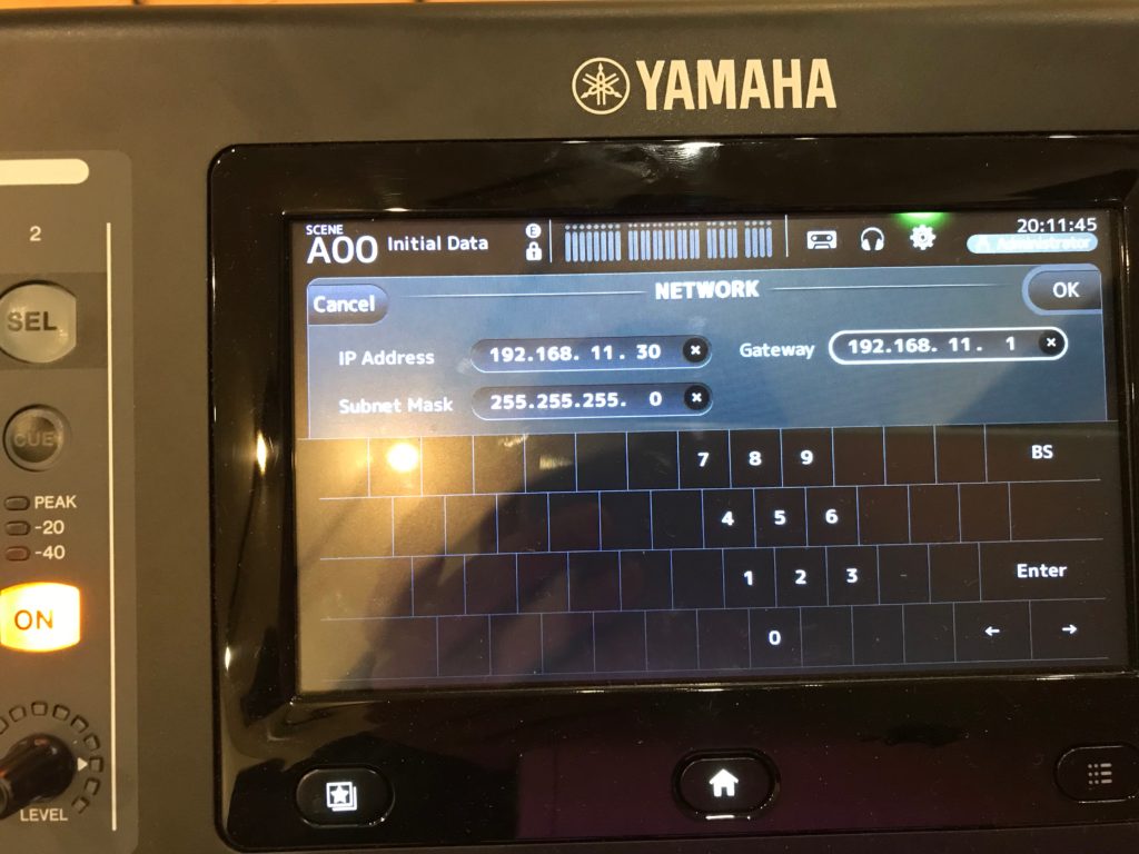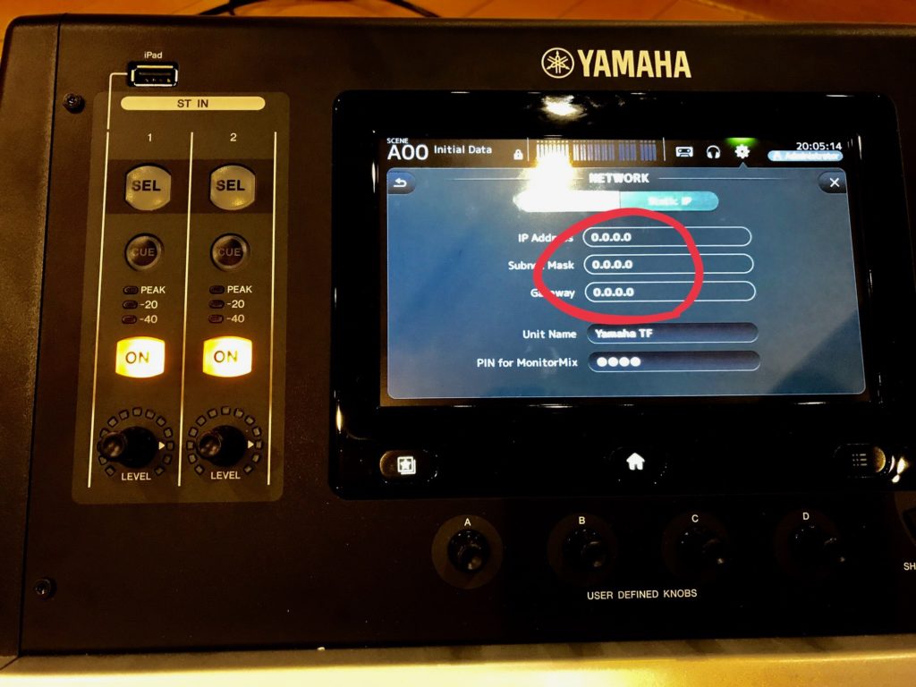 YAMAHA TF本体のIPアドレスを決めますが、ここでは「192.168.11.30」とします。